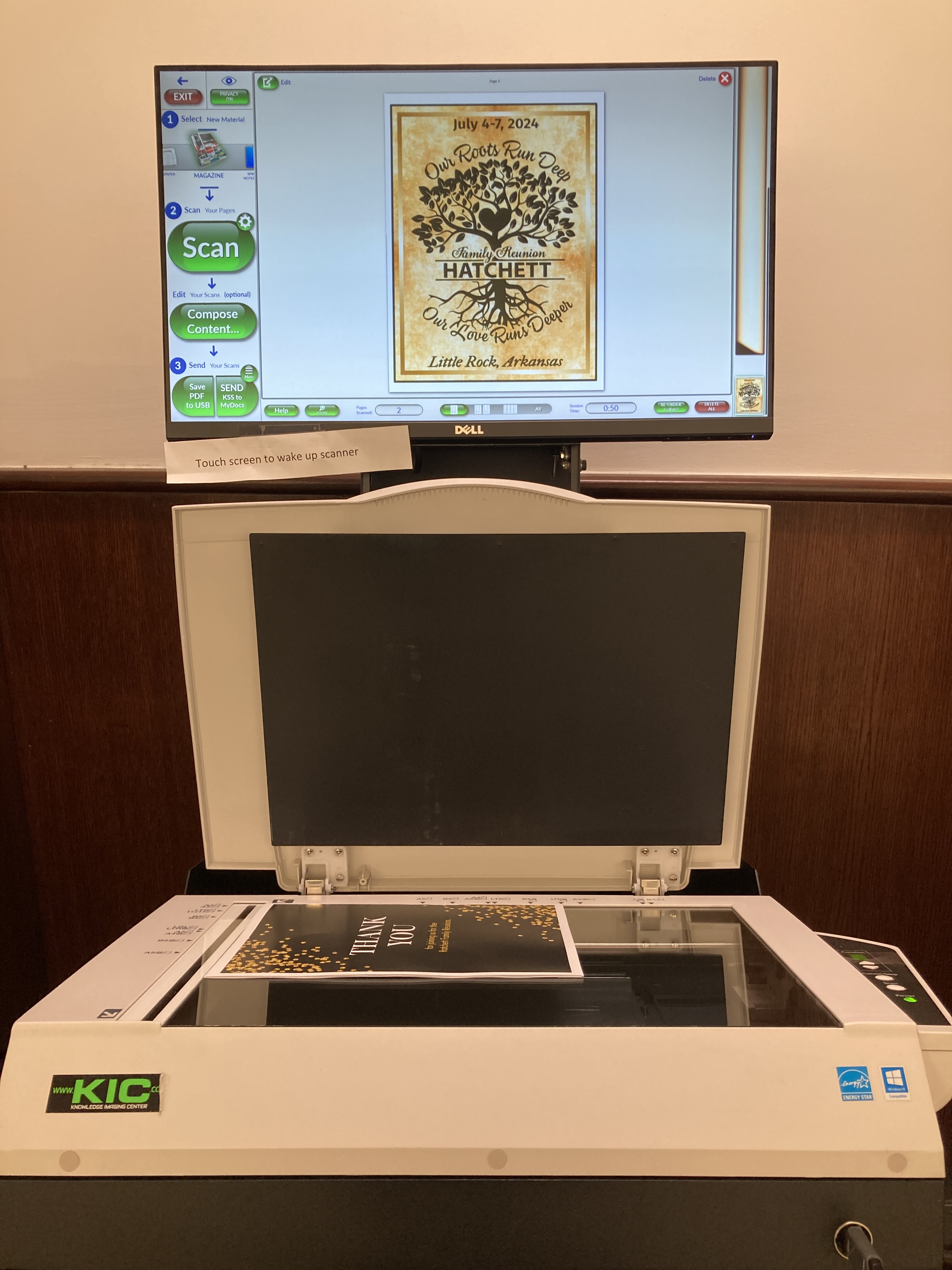 - If you are using the Epson FastFoto machine, sort your photos by size before you arrive at the library. The FastFoto machine can also scan documents up to 8×10 such as birth/death certificates, funeral programs, or military records.