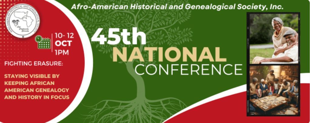 The Afro American Historical and Genealogical Society has announced that the 45th National Conference is now open for registration. This year’s conference will be virtual on October 10-12, 2024. The theme of this year’s conference is ‘Fighting Erasure: Staying Visible by keeping African AMerican Genealogy and History in Focus’. There will be sessions on DNA, research methodologies, how to research online, how to research during slavery for both the enslaved person and the slave owner, and how to tell your genealogy story just to name a few. Some of genealogy’s best and brightest will be presenters including, Shelley Murphy, Bernice Alexander Bennett, Orice Jenkins, Melvin Collier, and Janice Gilyard. There also will be a virtual expo hall that is included with registration that will provide the opportunity to purchase items, ask product questions from vendors/sponsors and talk with book authors.