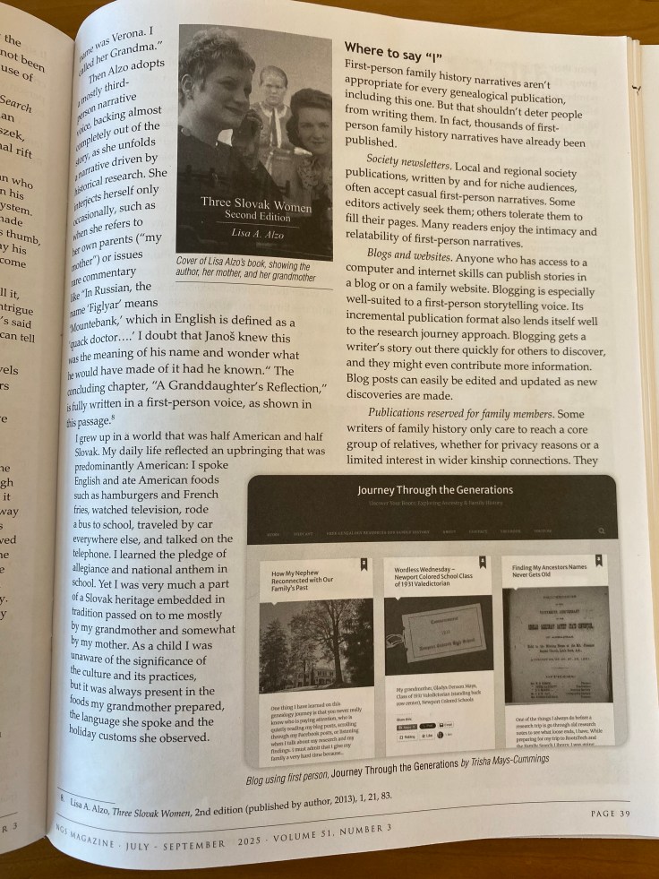 National Genealogical Society Quarterly. Vol. 51, no. 3 (July–September 2025), ‘I, Genealogist’: Using First-Person Voice in Family History Narratives by Sunny Jane Morton