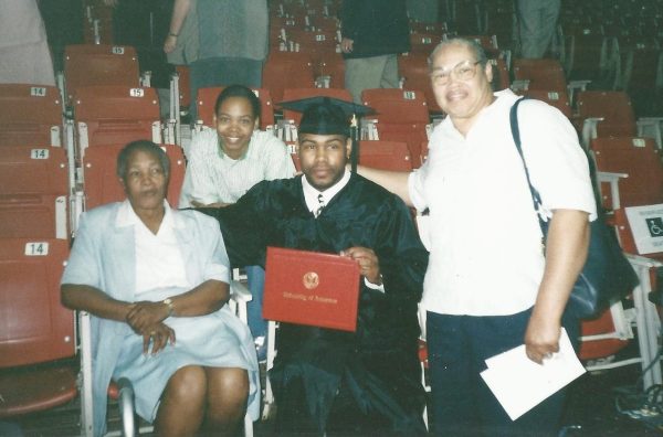 Phillip Cummings with his grandmother, Dorothy Wilson; sister, Constance Cummings; and mother, Phyllis Govan Cummings - University of Arkansas, Fayetteville May 2000