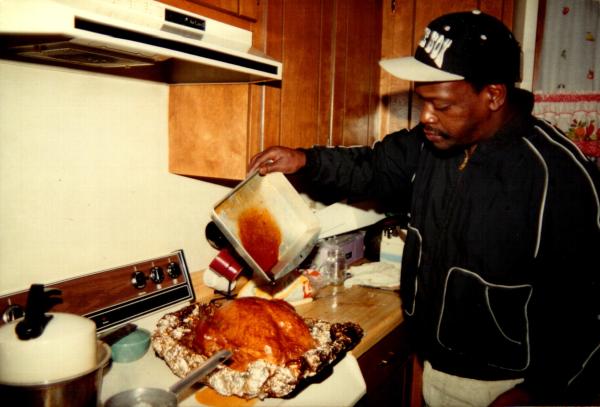My Dad, Wayman A. Mays, cooking our Thanksgiving turkey - Newport, Arkansas 1990