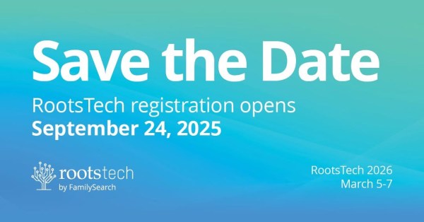 I'm excited to announce that registration for RootsTech 2026 opened on September 24, 2025. This conference will be held both virtually and in person in Salt Lake City, Utah March 5 - March 7, 2026, at the Salt Palace Convention Center. RootsTech is the largest genealogy conference in the world with keynote speakers, sessions, and... Continue Reading →